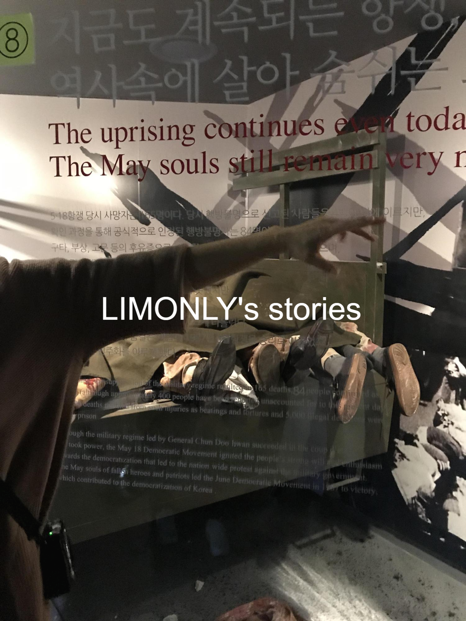 쓰러진 시민들을 총에 꽂힌 대검으로 찔러서 트럭에 실었다고 함. 확인사살을 한거라고 함.. 저건 재현해 놓은 모형이지만 모형만 봐도 당시의 처참함을 생생하게 느낄수 있었다 ㅠㅠ